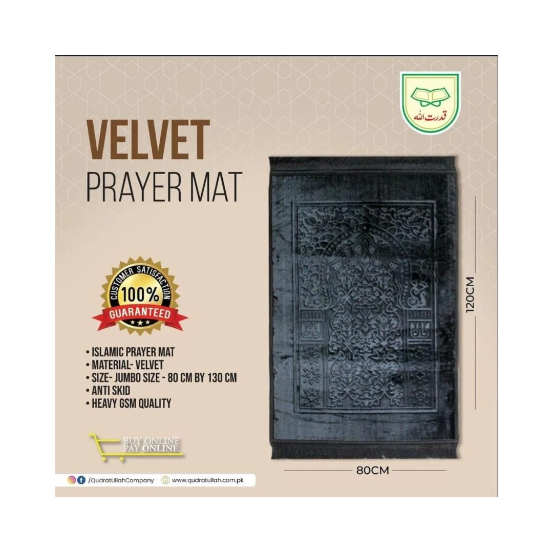 The black and golden patterned design exudes sophistication, making it an elegant addition to your home or mosque. Measuring 60 x 90 cm, it’s the perfect size for individual use—lightweight, portable, and ideal for travel. With its anti-slip backing and durable construction, this prayer rug offers both style and practicality. Discover the best velvet prayer mat in Pakistan and elevate your daily prayers with unmatched comfort and elegance from Qudratullah Company.