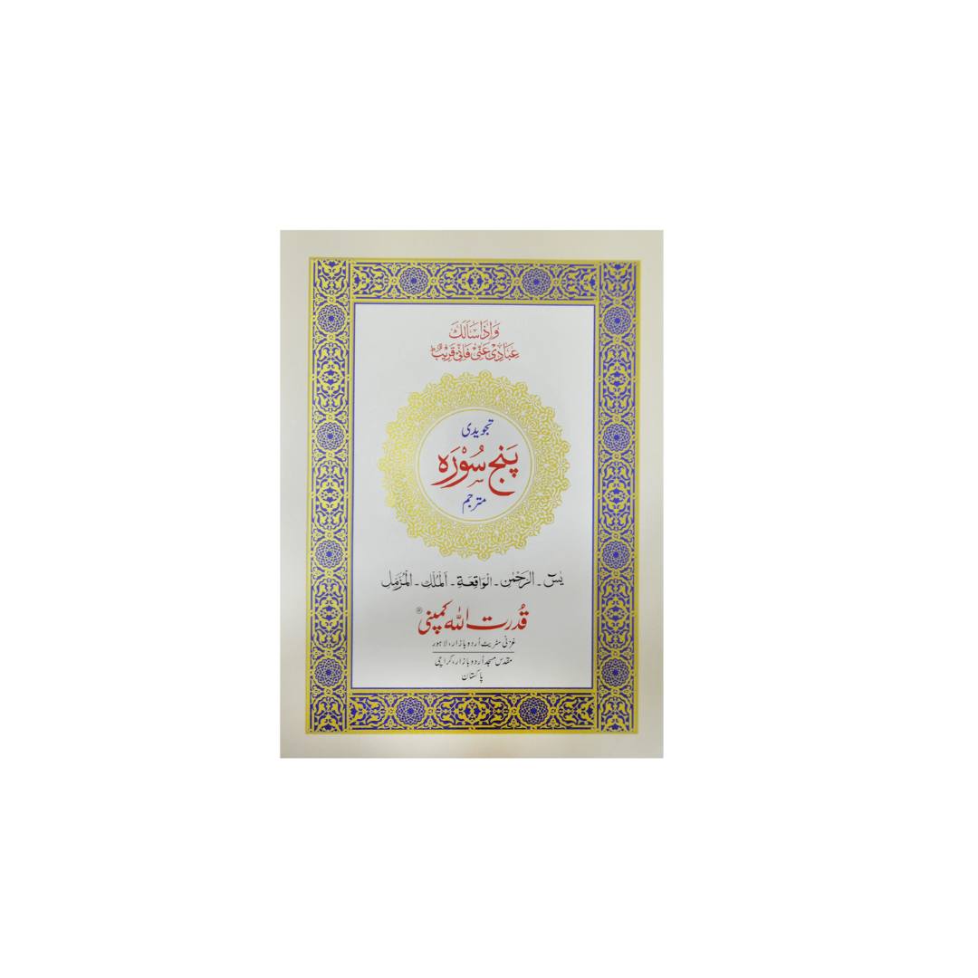 Deepen your connection with the Holy Quran through the Panj Surah with Urdu Translation, beautifully published by Qudrat Ullah Company. This edition contains five essential Surahs — Yaseen, Rahman, Waqiah, Mulk, and Al-Jumu’ah — presented in clear Arabic text alongside a comprehensive Urdu translation for better understanding and reflection.