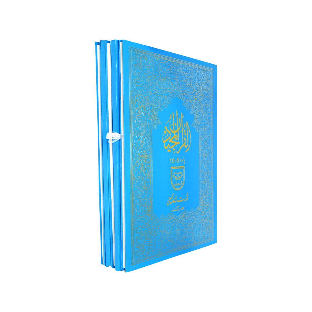 The Punj Para Set (6 Volumes) by Qudratullah Company is a beautifully designed Quran set that offers clarity, comfort, and durability for readers of all ages. Featuring a bold 11-line Arabic script, it ensures effortless recitation and accurate pronunciation, making it ideal for students, teachers, and daily readers. Printed on premium Quran paper, the text appears sharp and smooth, providing a luxurious reading experience that honors the sacred message of the Holy Quran.